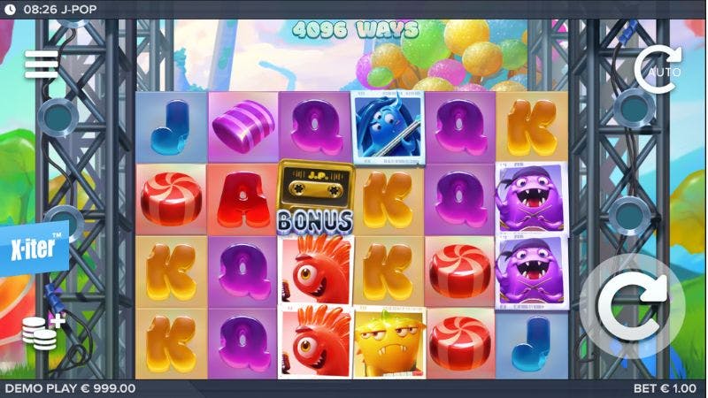 Na slot machine J-POP, o tema é, não surpreendentemente, a J-pop, mas também doces. Se não sabe o que é J-pop, trata-se de música pop japonesa. É por isso que pode ver símbolos como discos, jukeboxes, cassetes e até mesmo alguns membros de bandas, embora estes sejam monstros do tipo “blubber” ou algo do género. Os rebuçados aparecem tanto como símbolos como no fundo do jogo.