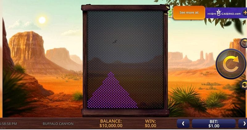 Esta slot utiliza um mecanismo fascinante conhecido como Megapixel Pays, que foi utilizado pela primeira vez no Retro Riches. Em vez de uma grelha composta por rolos e linhas, existe uma matriz de 2400 pontos. Como tal, não existem linhas de pagamento. Discutiremos exatamente como funciona mais tarde na nossa análise da Buffalo Canyon.