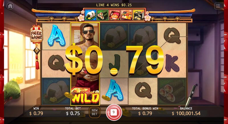 A seguir, nesta análise do Gokudo Bentou, vamos debruçar-nos sobre as características de jogo da slot. Embora existam apenas alguns elementos de bónus, cada um deles vale o seu peso em ouro. Ou, pelo menos, em sashimi.