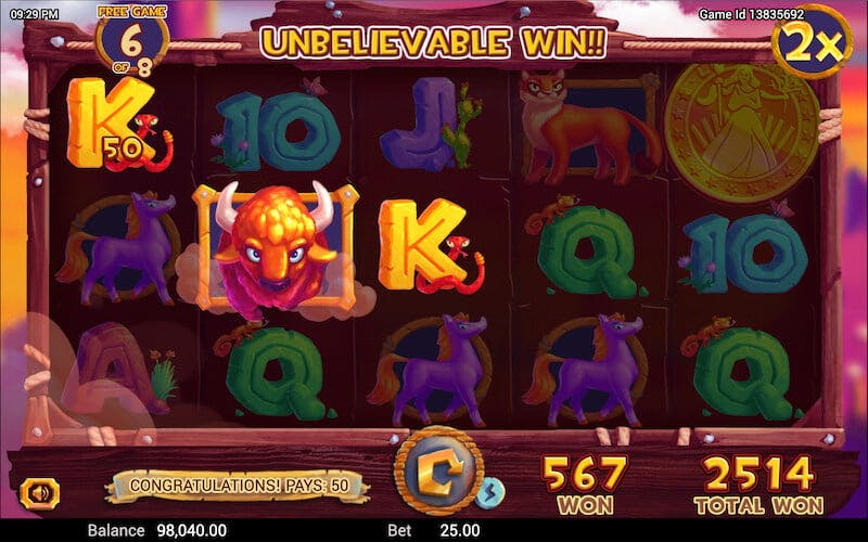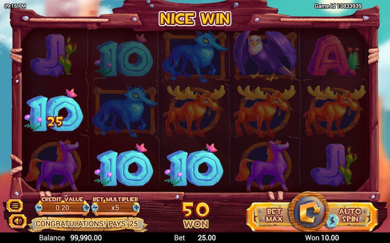 Como seria de esperar, os símbolos premium são animais nativos, de acordo com o tema do jogo. Em termos de sons, ouve-se um zumbido e um clique básicos durante o jogo. Além disso, Swintt introduziu uma delicada melodia de estilo ocidental sempre que a slot está inativa. Finalmente, o símbolo do búfalo também grunhe ruidosamente sempre que aparece nos rolos.