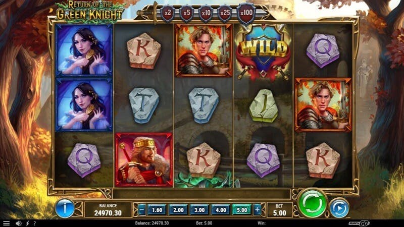 Lançada em outubro de 2023, a slot Return of the Green Knight apresenta 20 linhas de pagamento num layout 5×3. Existe um potencial de ganho máximo de 40 000x, em apostas que vão desde 0,10€ até 100€ por jogo.