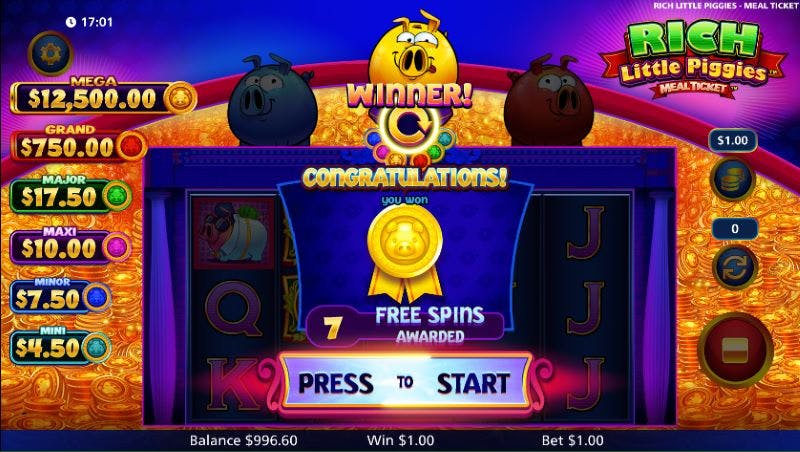 Antes de jogar com dinheiro real, recomendamos que experimente a demo da Rich Little Piggies Meal Ticket. As slots grátis são sempre a melhor forma de se familiarizar com a jogabilidade, aprendendo as regras num ambiente sem riscos.
