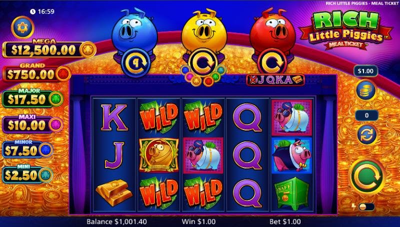 Onde posso jogar Rich Little Piggies Meal Ticket a dinheiro real?